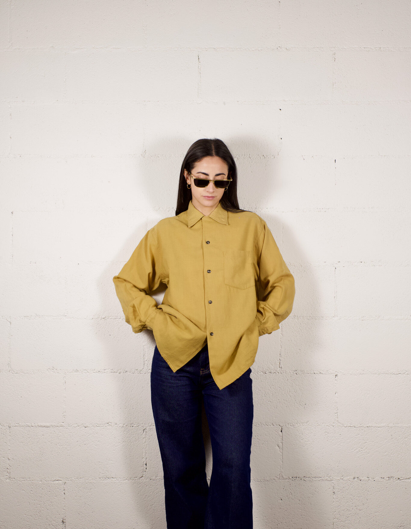 Its warm, vibrant color adds a touch of originality to any look, while the classic collar enhances its understated elegance. Made from quality materials, the shirt offers an impeccable fit. It has a very small spot in the frontal area near the collar.