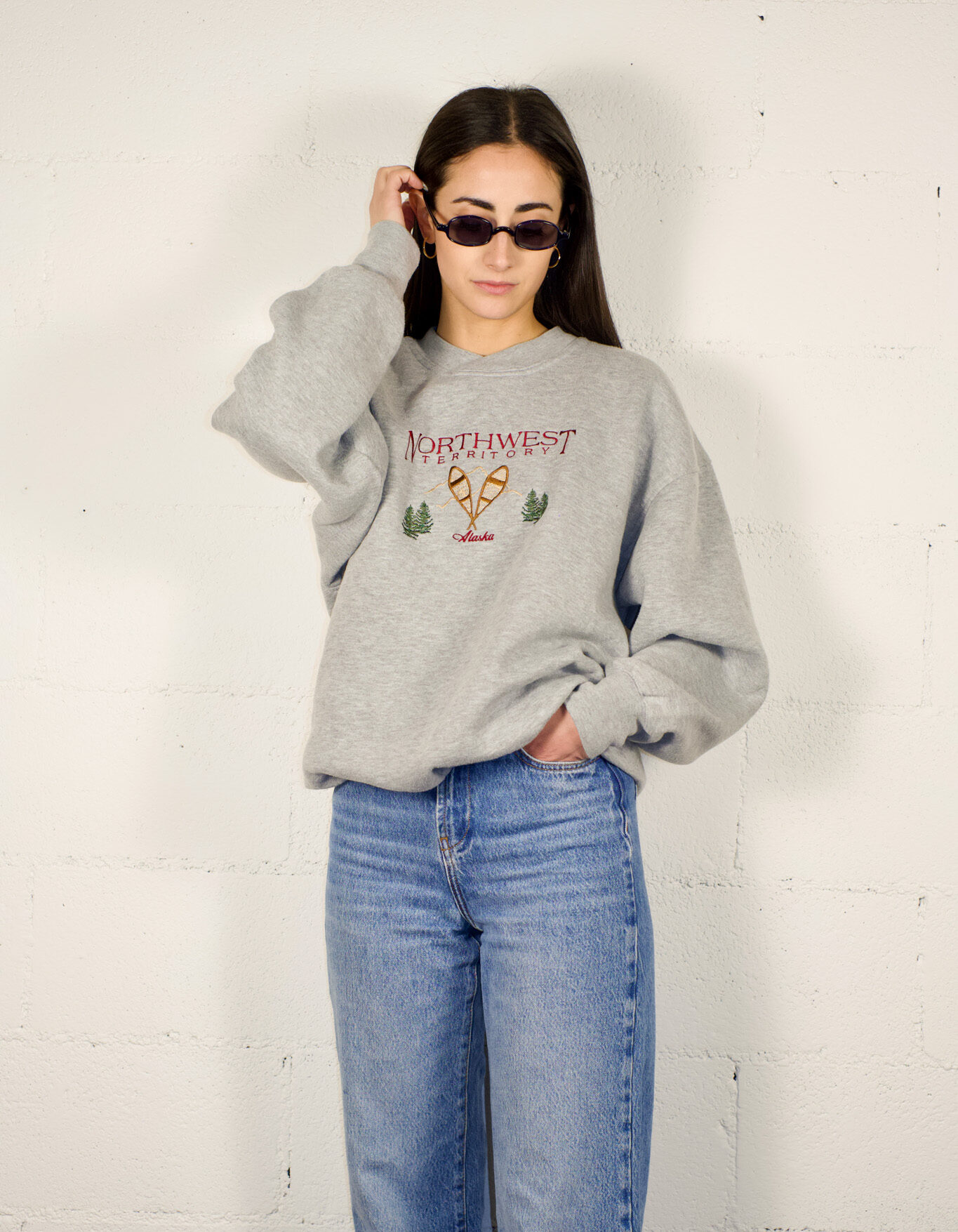 Gray crewneck sweatshirt with an essential design. Embroidered details add a touch of originality. Embroidered details add a touch of originality.