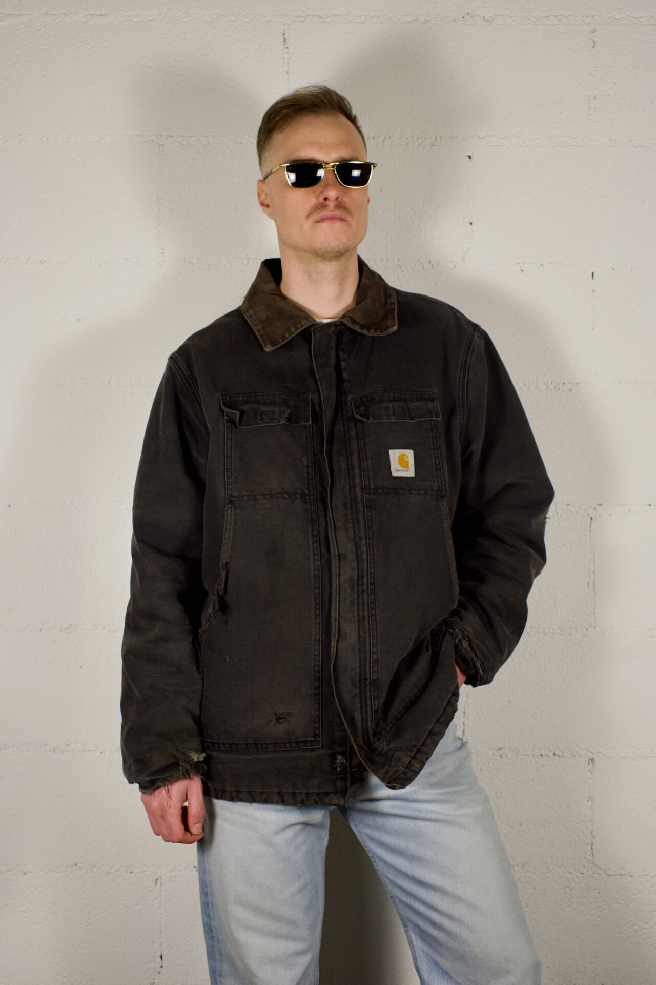 Work jacket with quilted padding, original zipper, features inner waist ties.