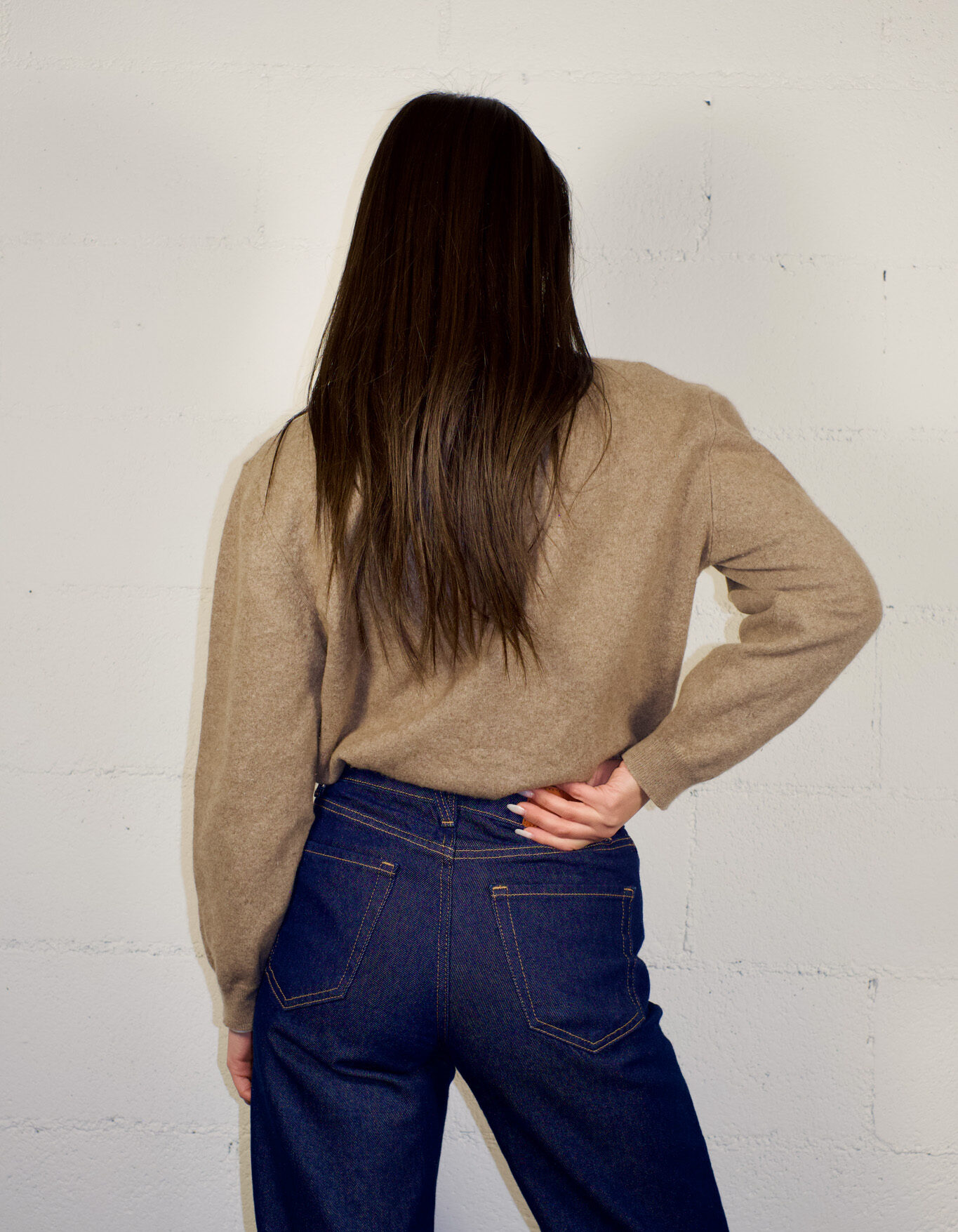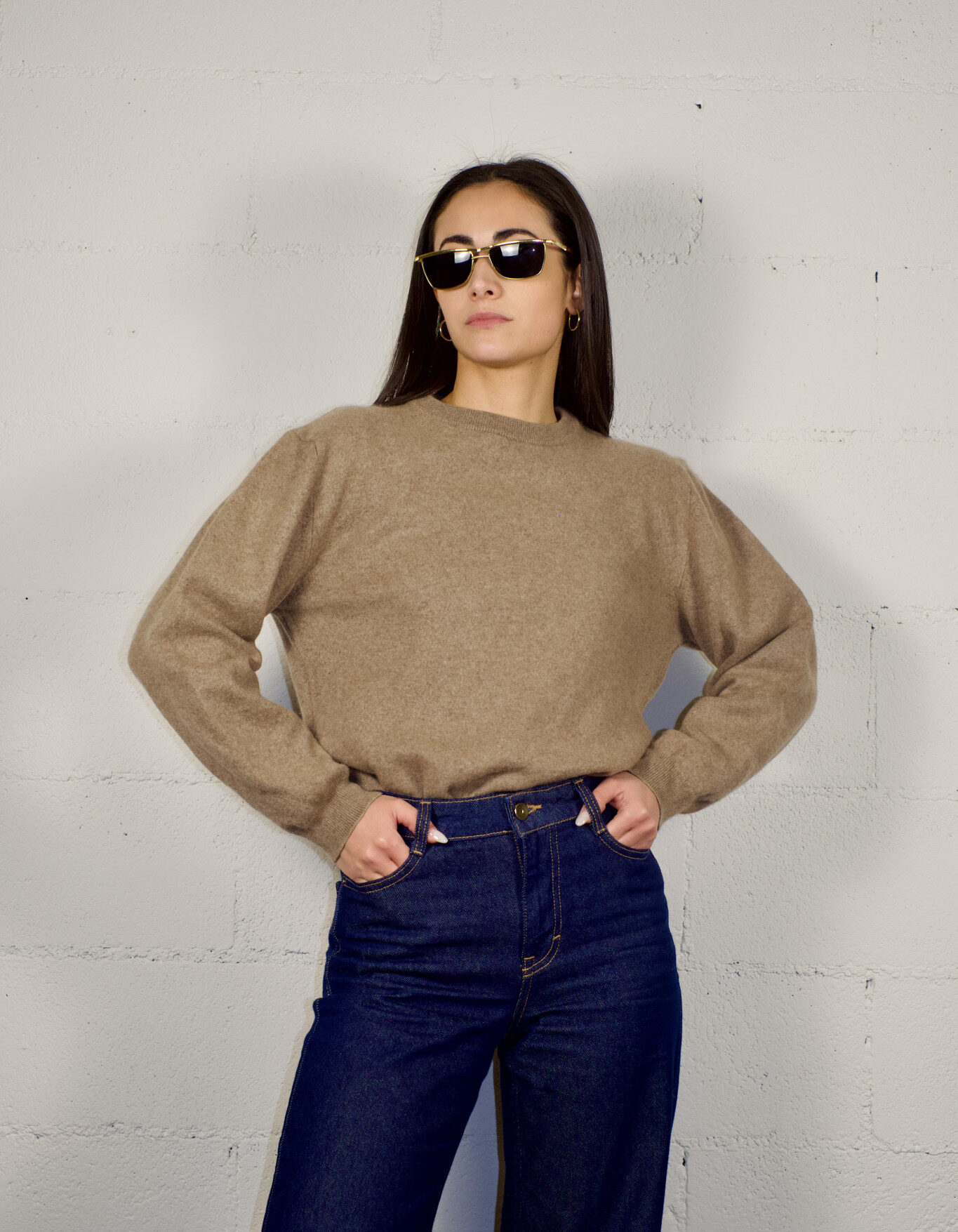 Sophisticated and classy camel-colored crewneck sweater with unique softness and unparalleled comfort.