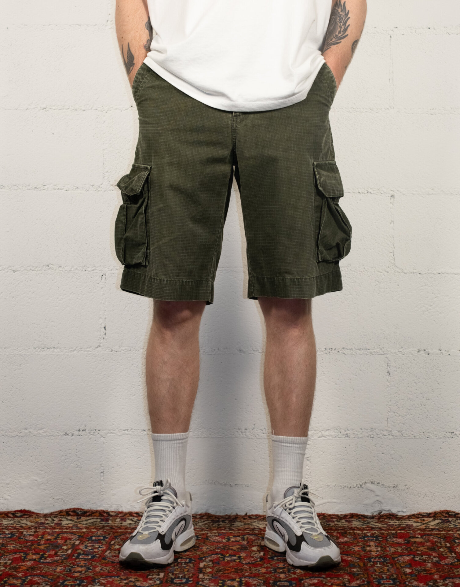 Bermuda shorts with straight cut and knee length. Equipped with cargo-style side pockets and belt loops at the waist. Made of durable and breathable fabric, ideal for a casual, urban or outdoor look. Functional and versatile style, perfect for the warm season.