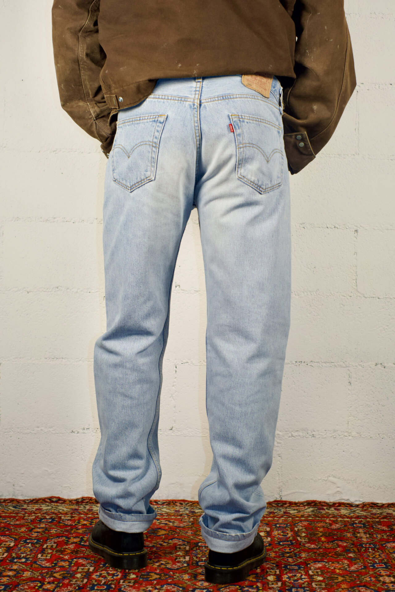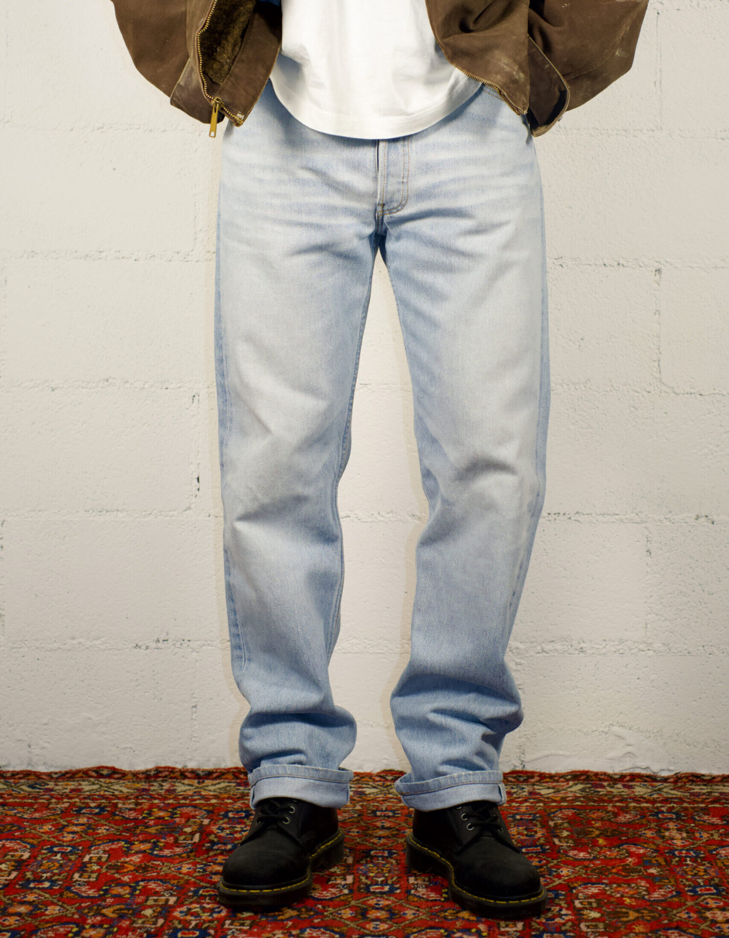 Levi’s 501 jeans, Red Tab, straight leg, 5-pocket, button closure.