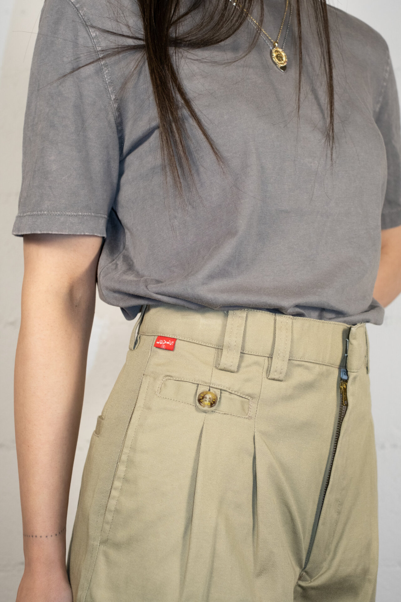 This garment has been washed and treated using methods that respect fabrics and materials to ensure care and integrity. It is now ready to be loved again.