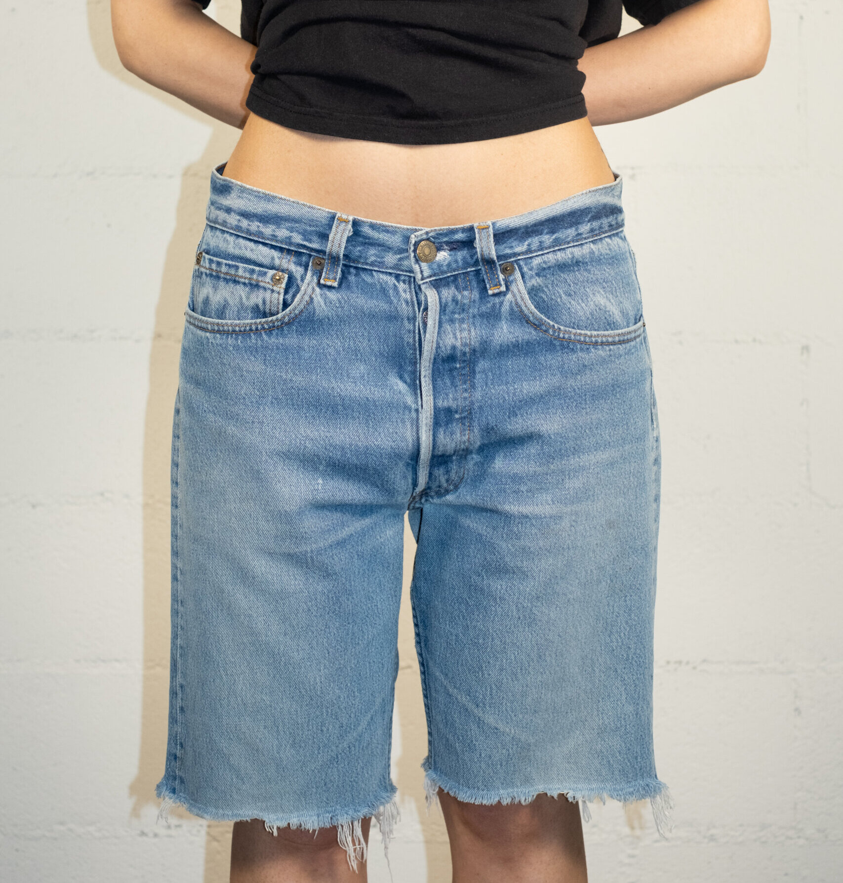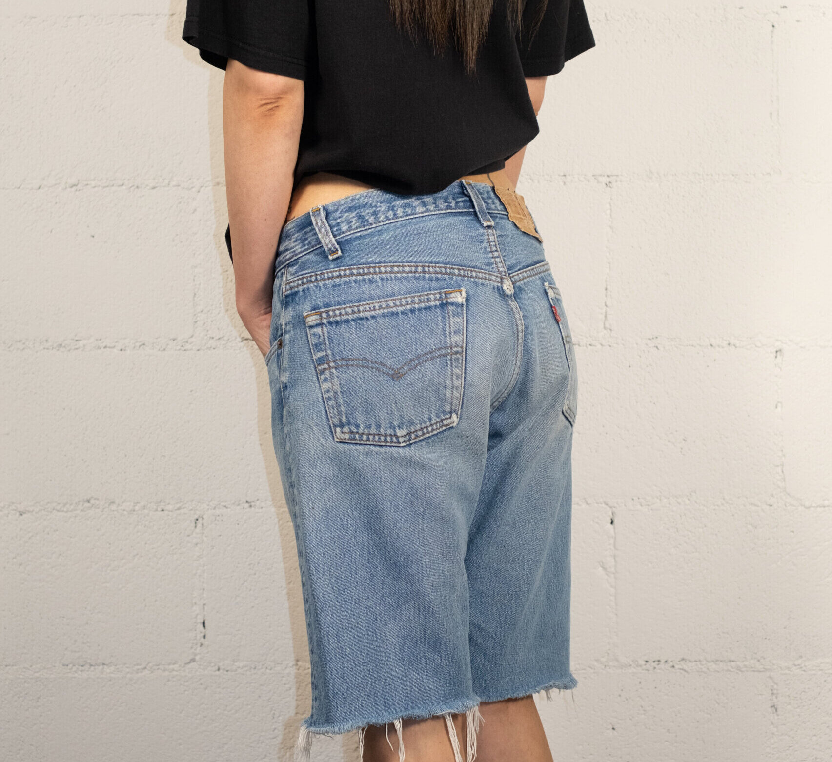 Levi’s Made in the USA women’s Bermuda made of high-quality denim, cut with a medium or high waist. It offers a comfortable and durable fit with a button fastening. The design includes the classic Levi’s branding in leather and the Red Tab. A must-have for those looking for style and quality.