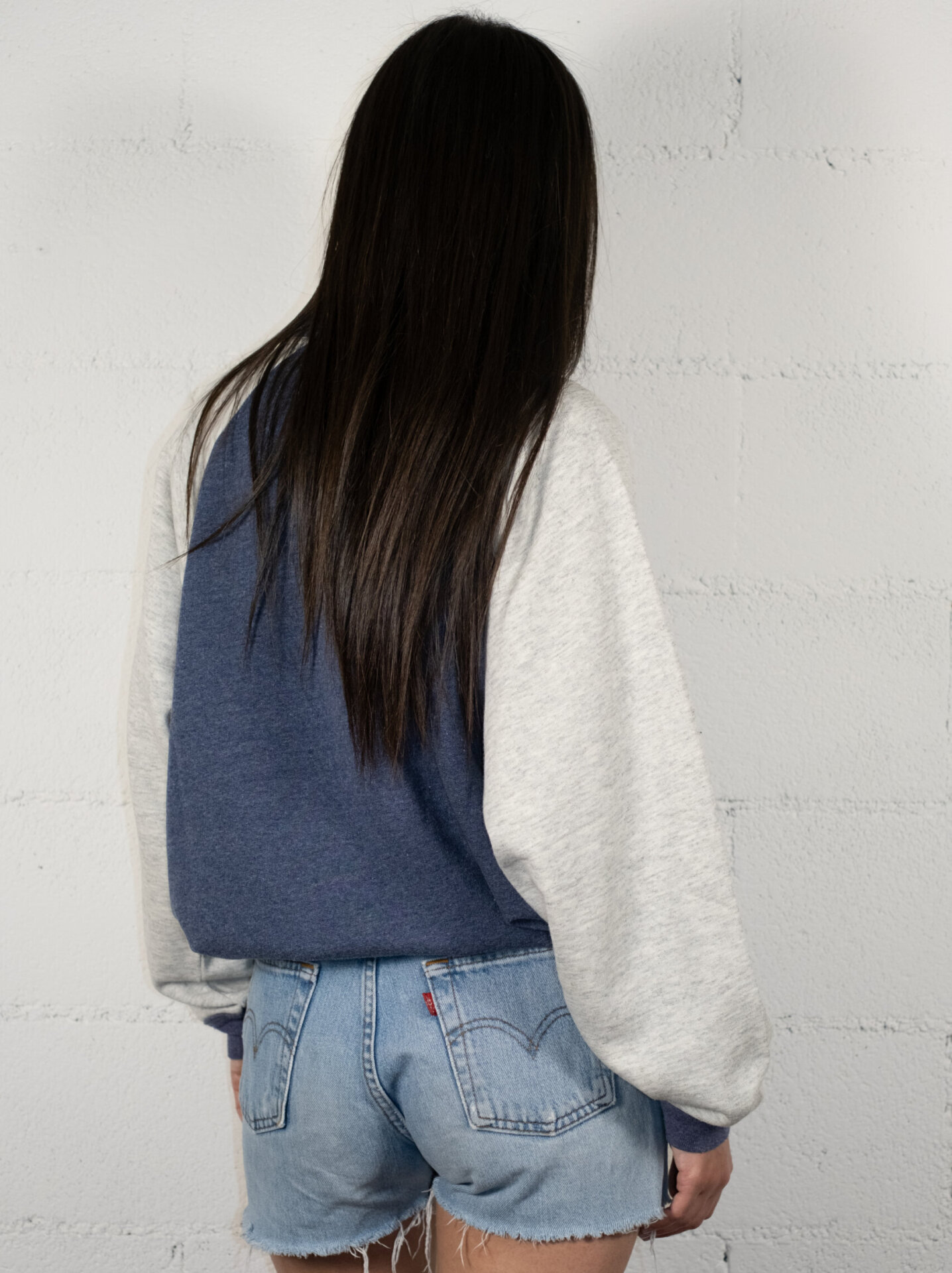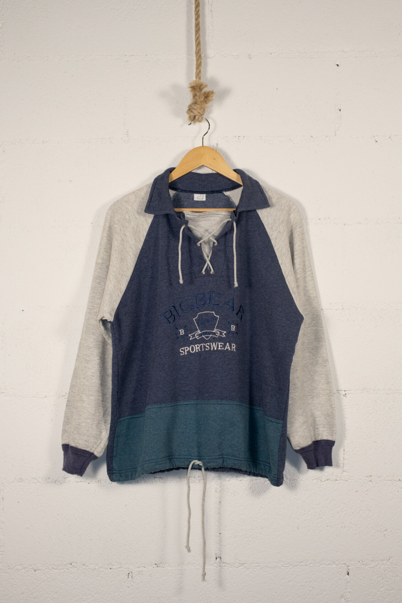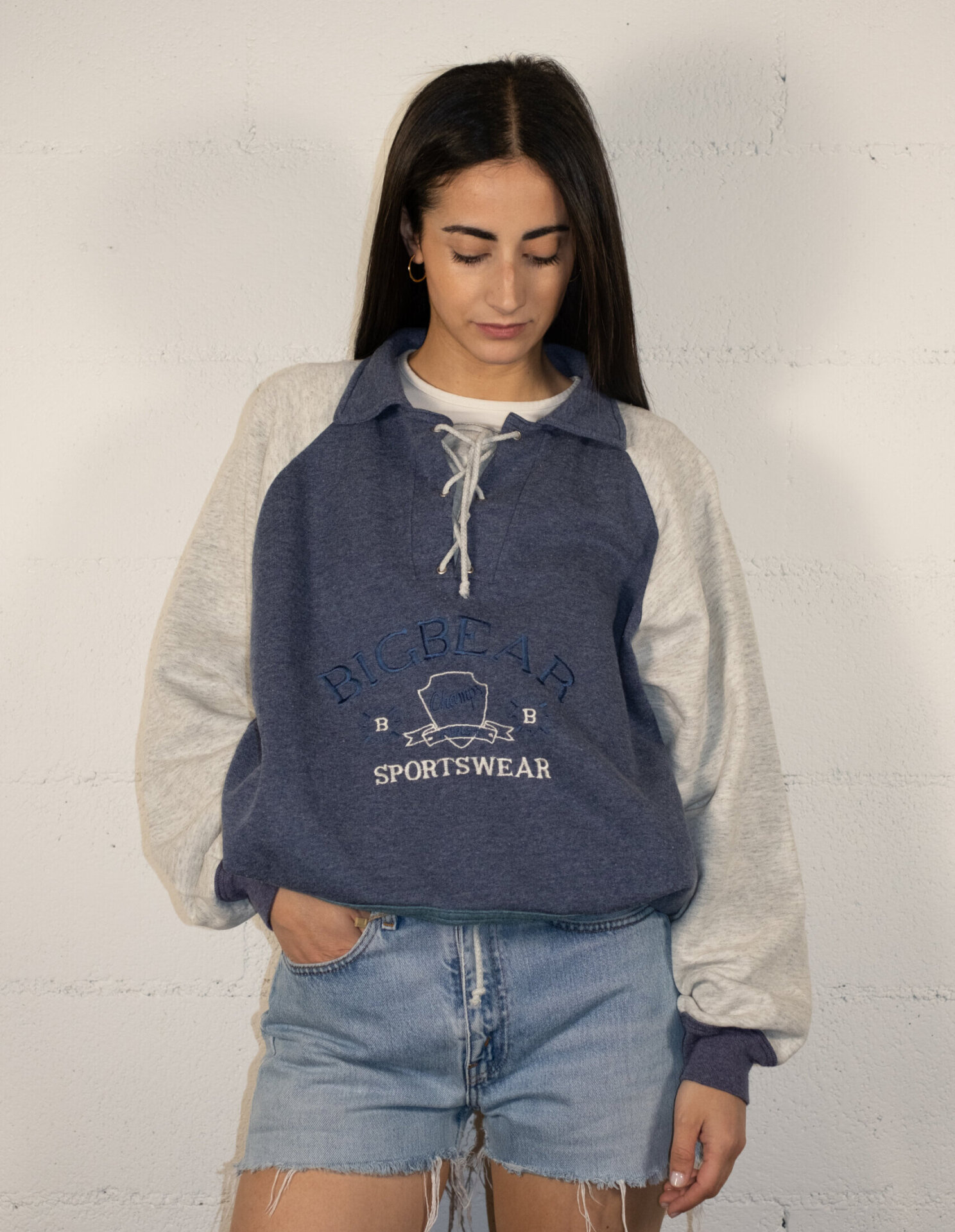 Vintage-style sweatshirt with collar and cross-tie closure, original detail with a retro feel. Decorative front embroidery and adjustable drawstring at hem for a customized fit. Made of thick cotton, it combines comfort and sporty character.
