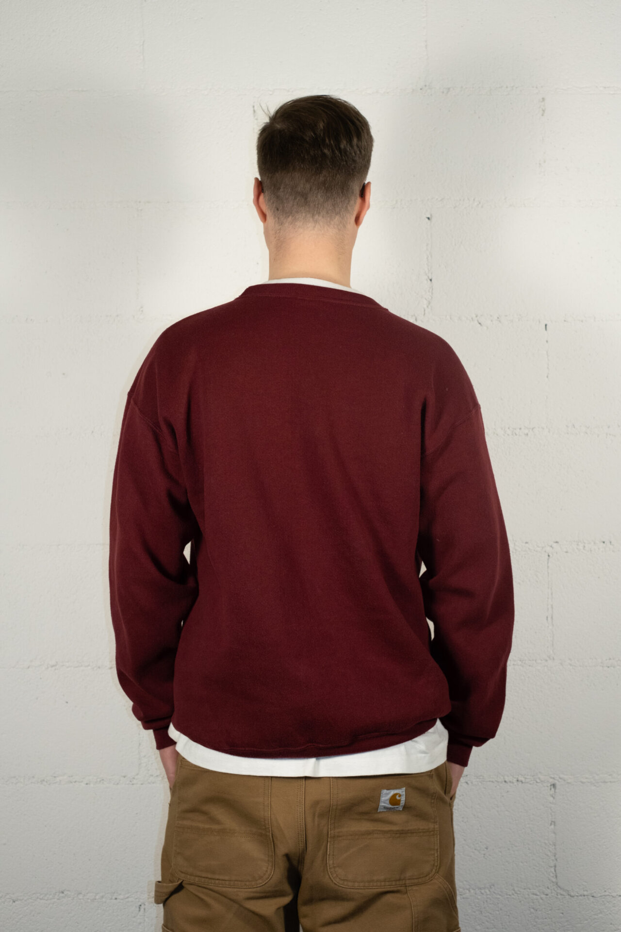 Crew-neck sweatshirt with fleece lining. Made in the U.S.A.
