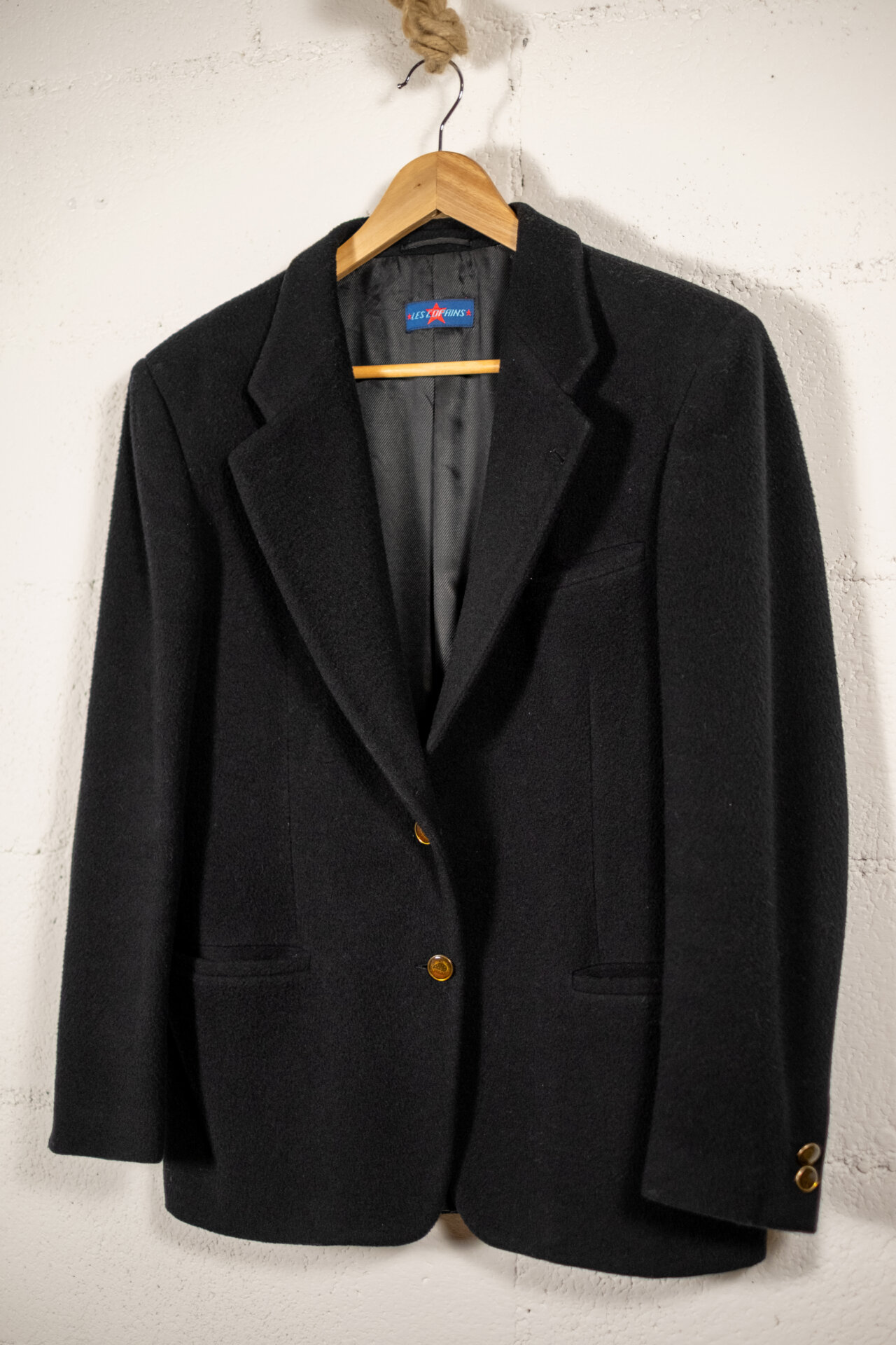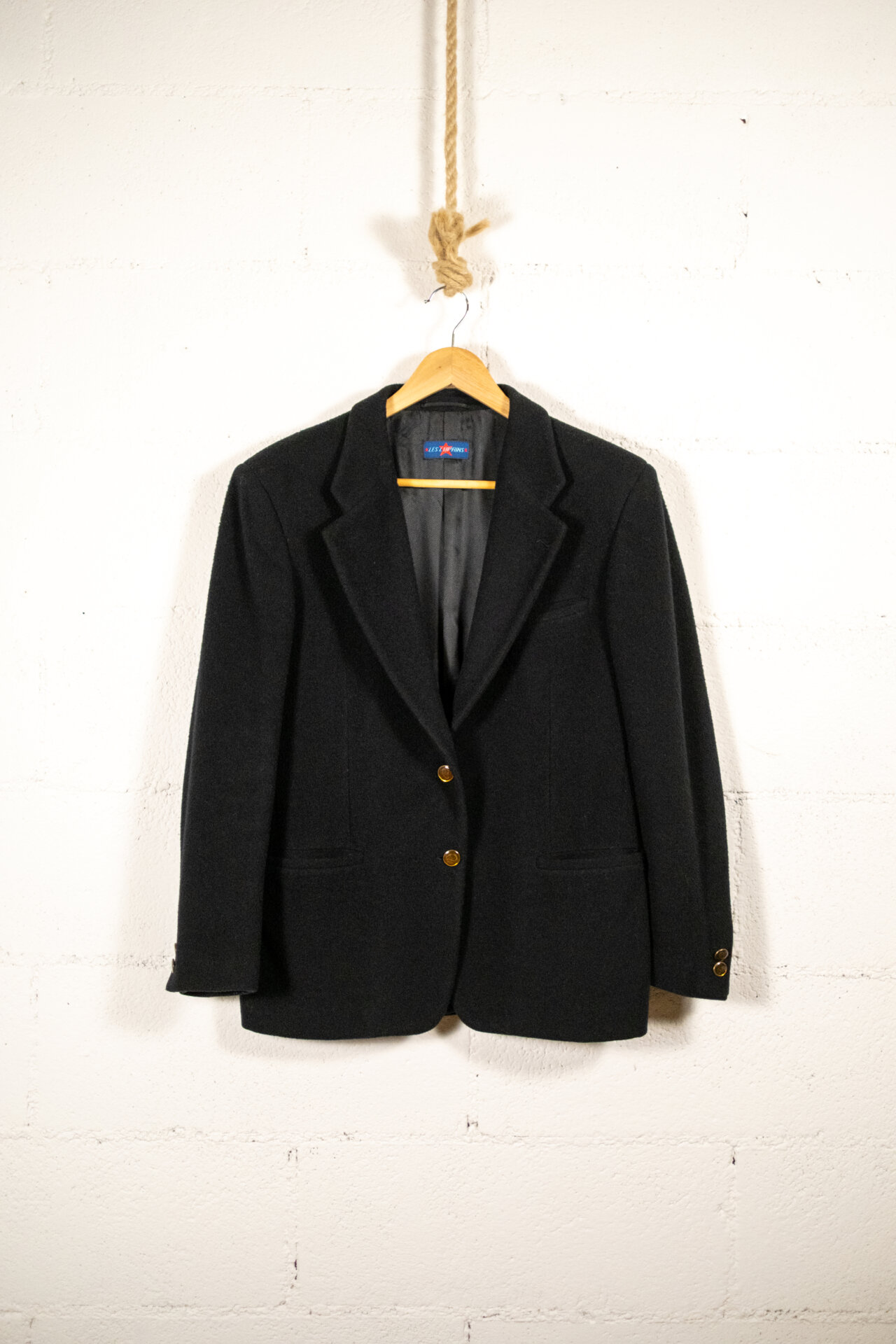 Blazer vintage donna color nero, dal taglio classico e senza tempo, perfetto per chi cerca un capo elegante e versatile da inserire nel proprio guardaroba. Realizzato in lana, presenta una linea strutturata con spalle definite, rever e chiusura frontale con bottoni dorati che donano un tocco raffinato.