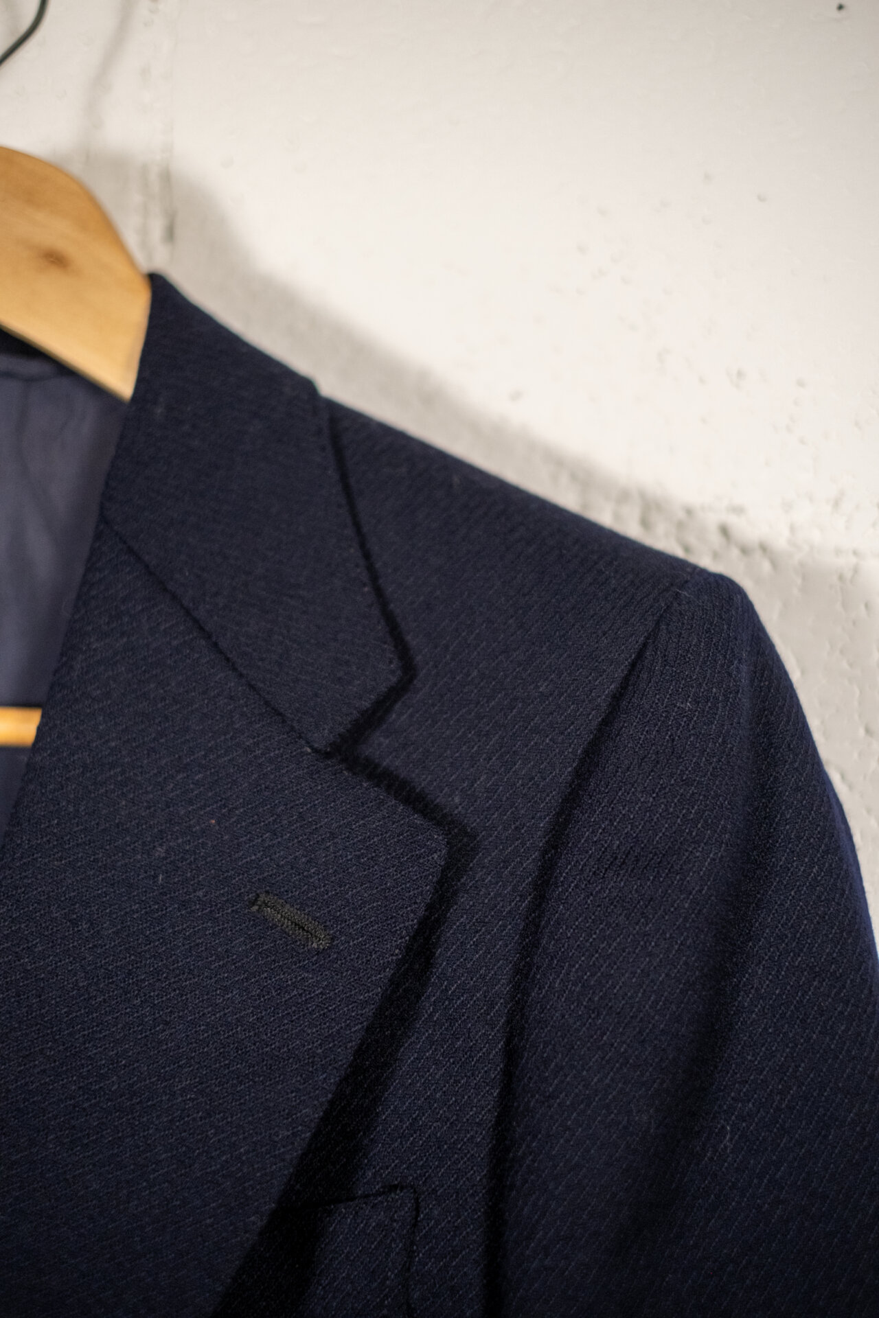 Blazer Texture Vintage Blu Navy Monopetto – Giacca Sartoriale Classica Anni ’90 / Taglia S
