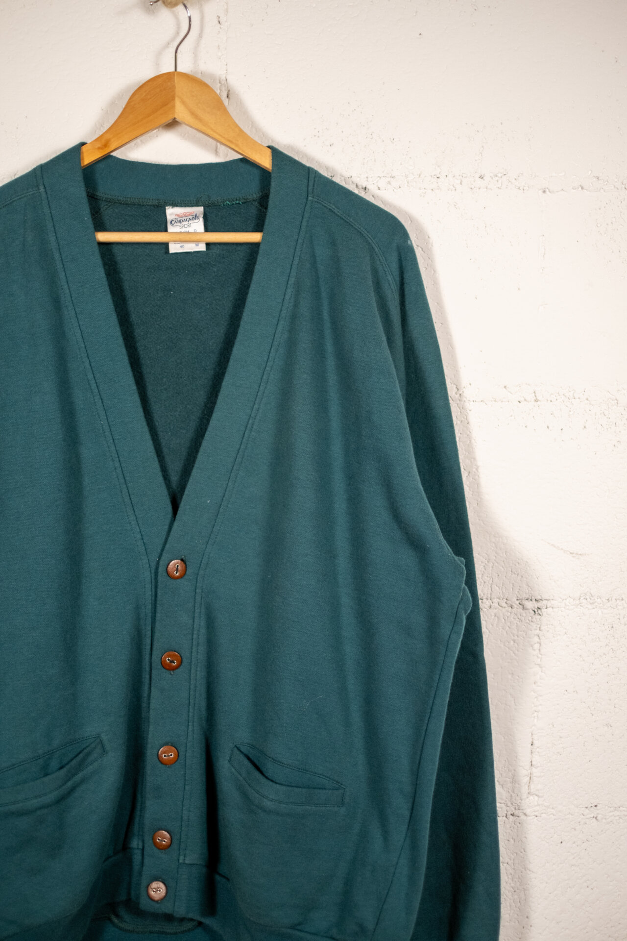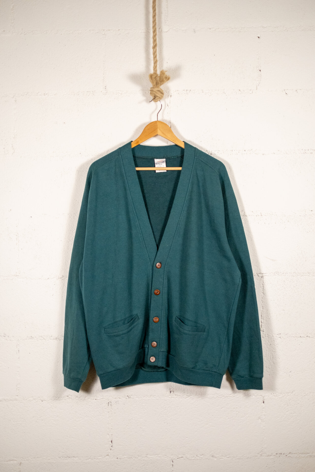 Cardigan vintage uomo in cotone color verde petrolio con chiusura frontale a bottoni.