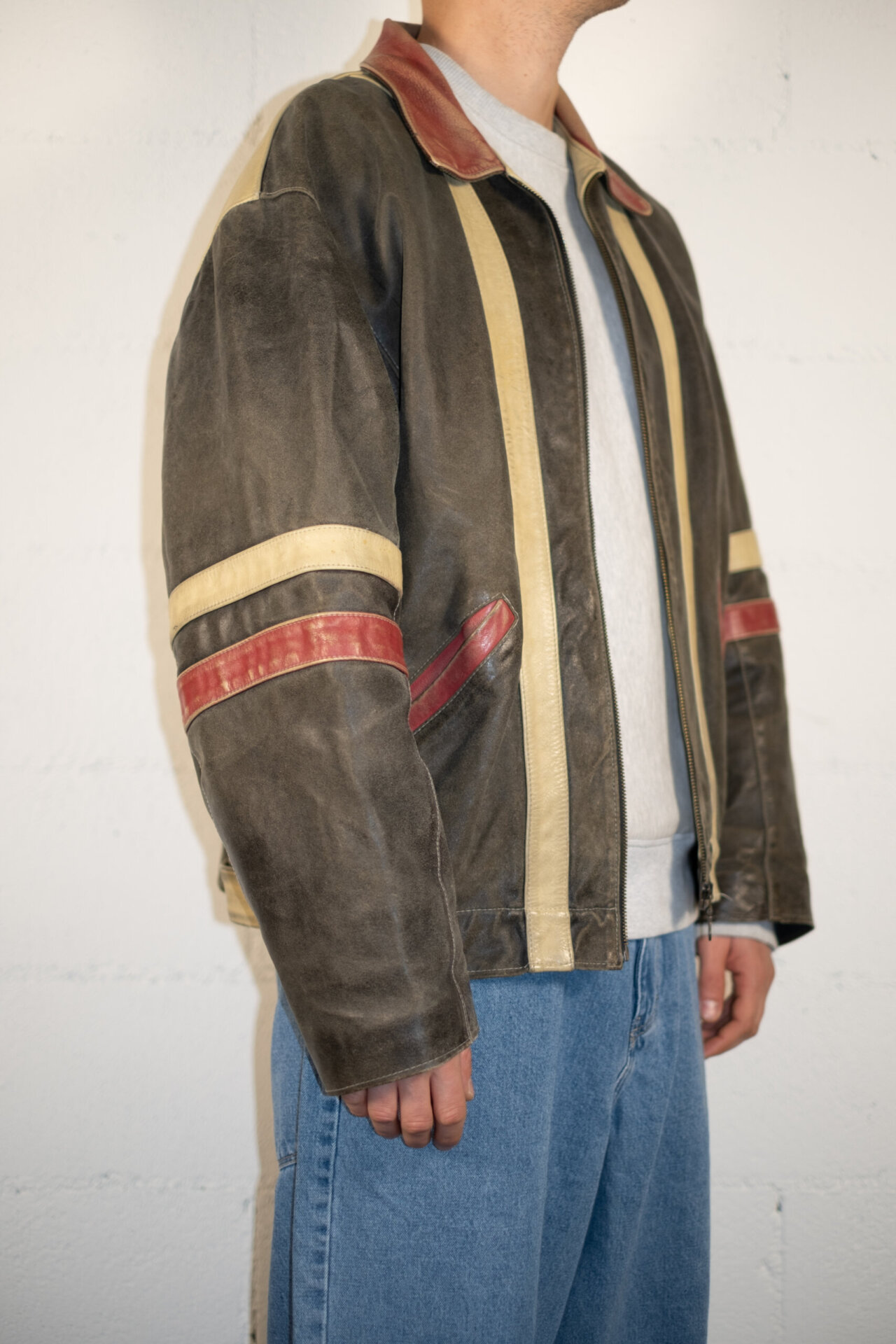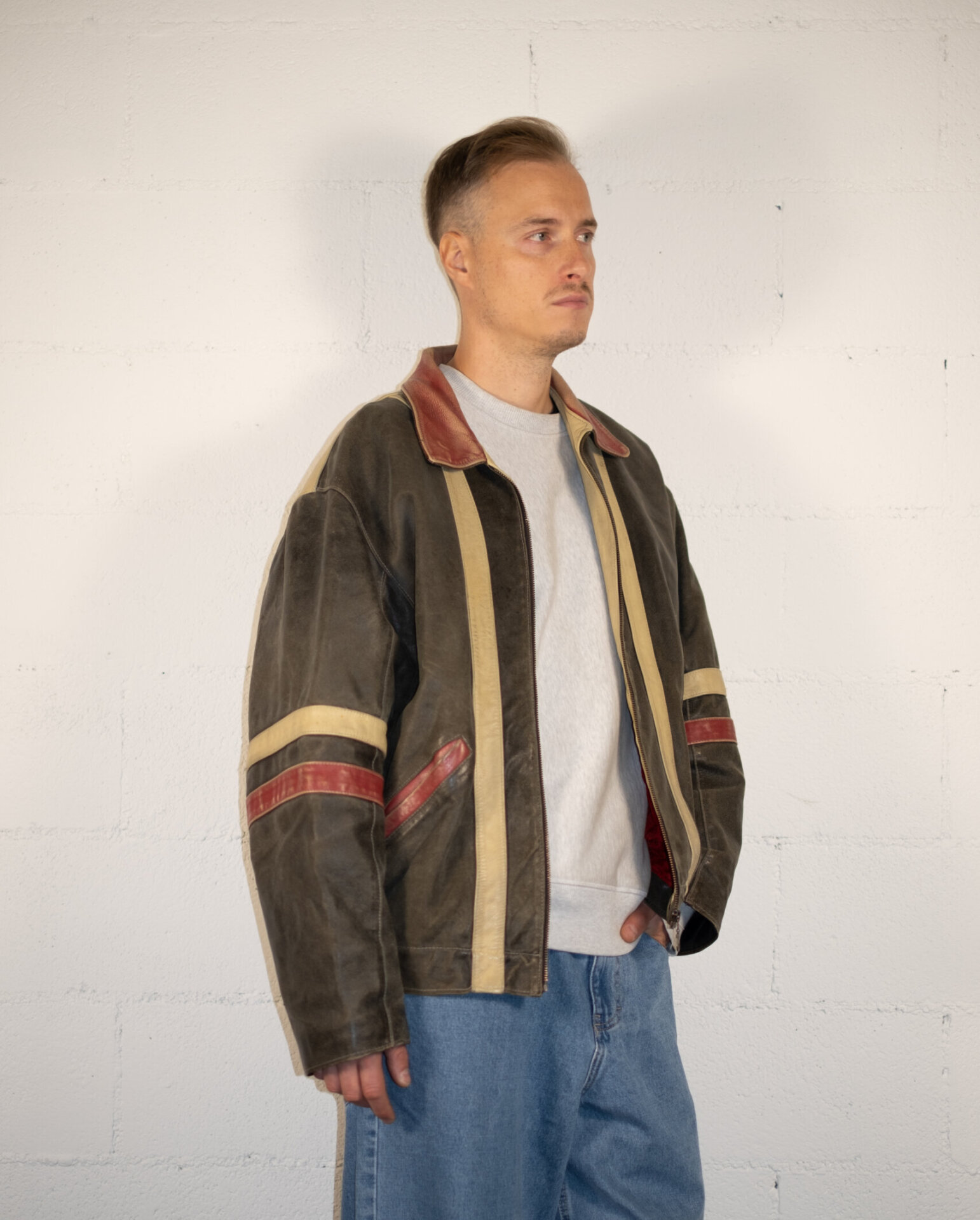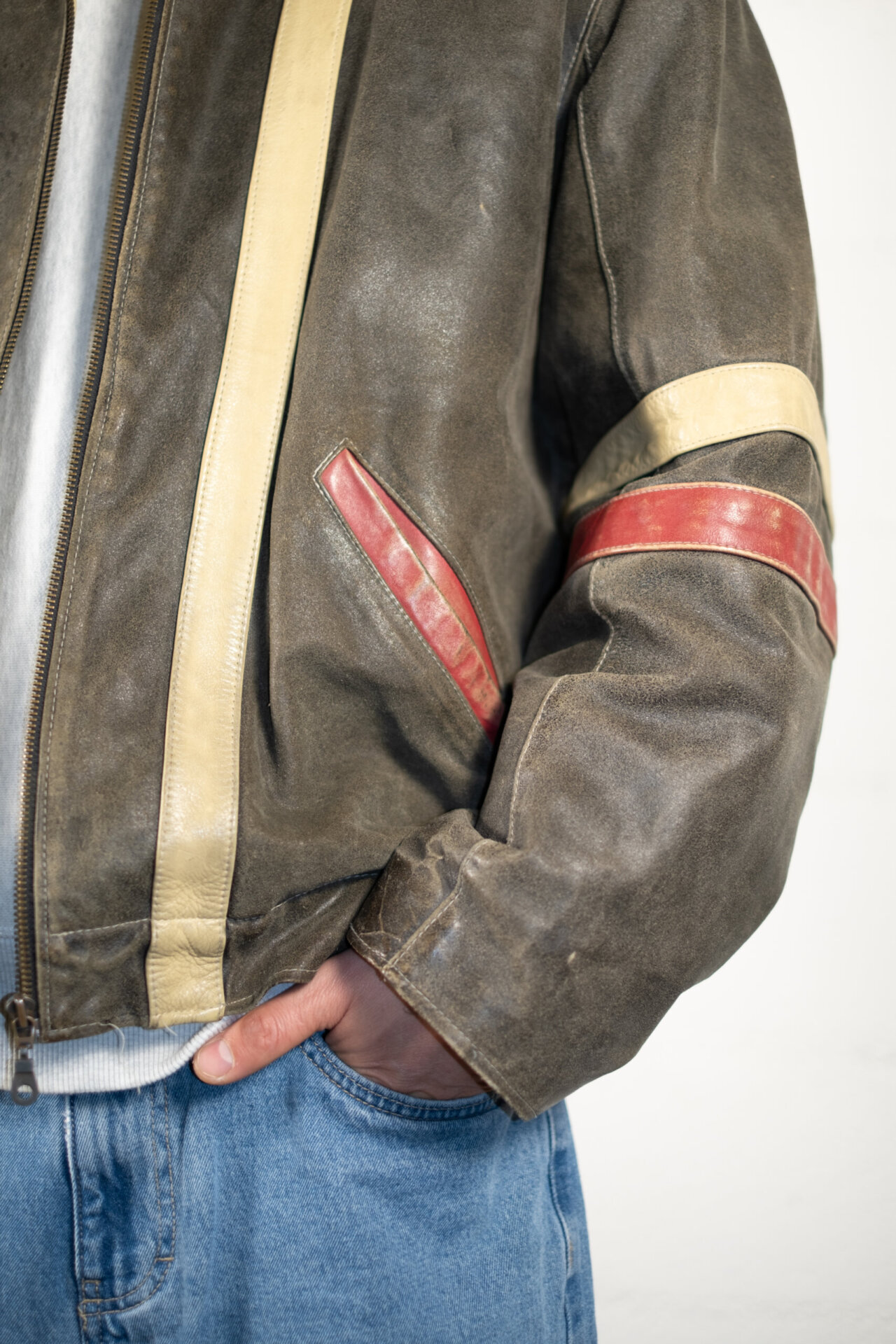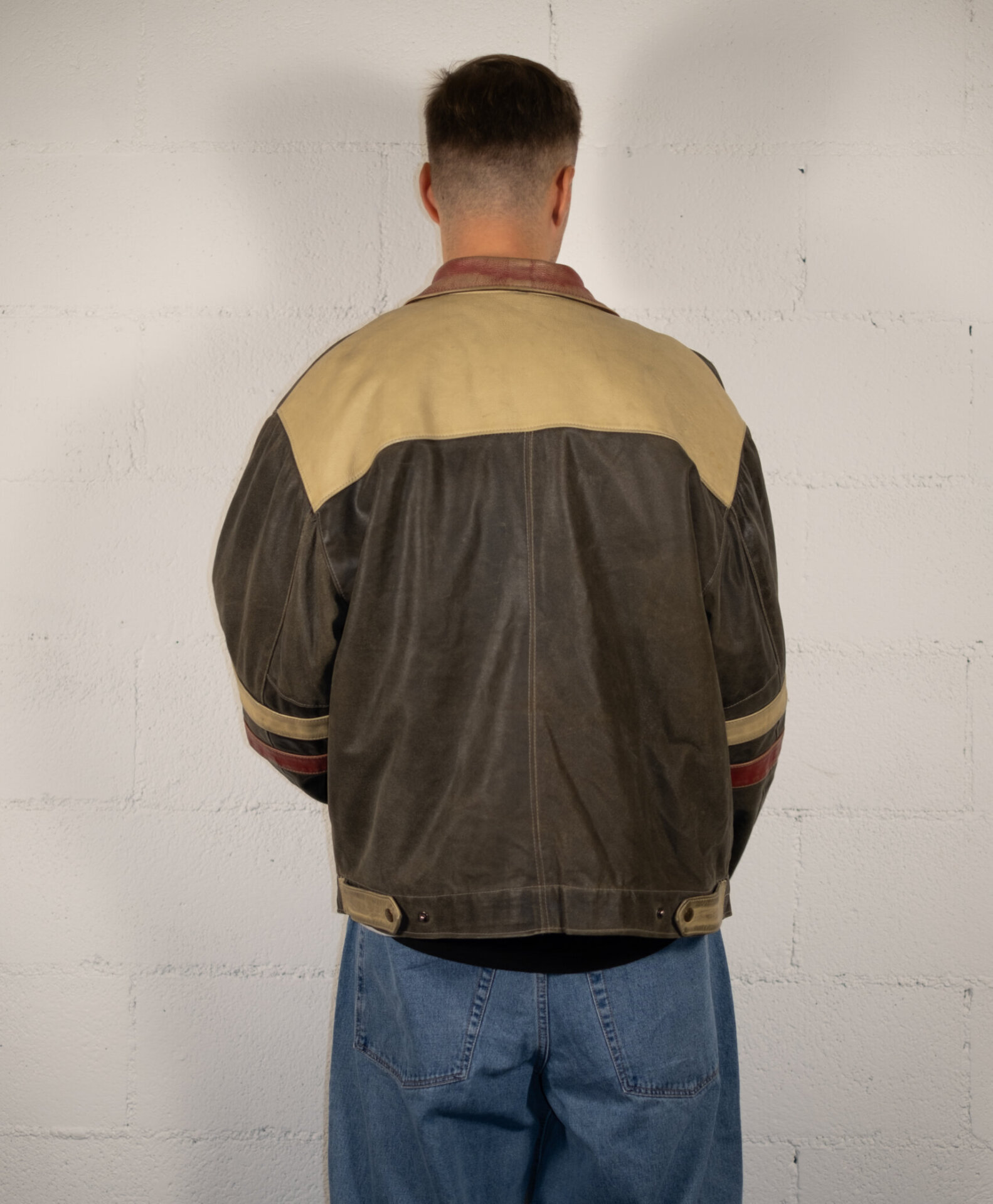 Giacca biker marrone e rossa anni 80’/ Taglia L