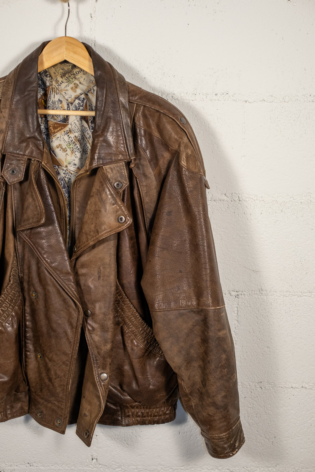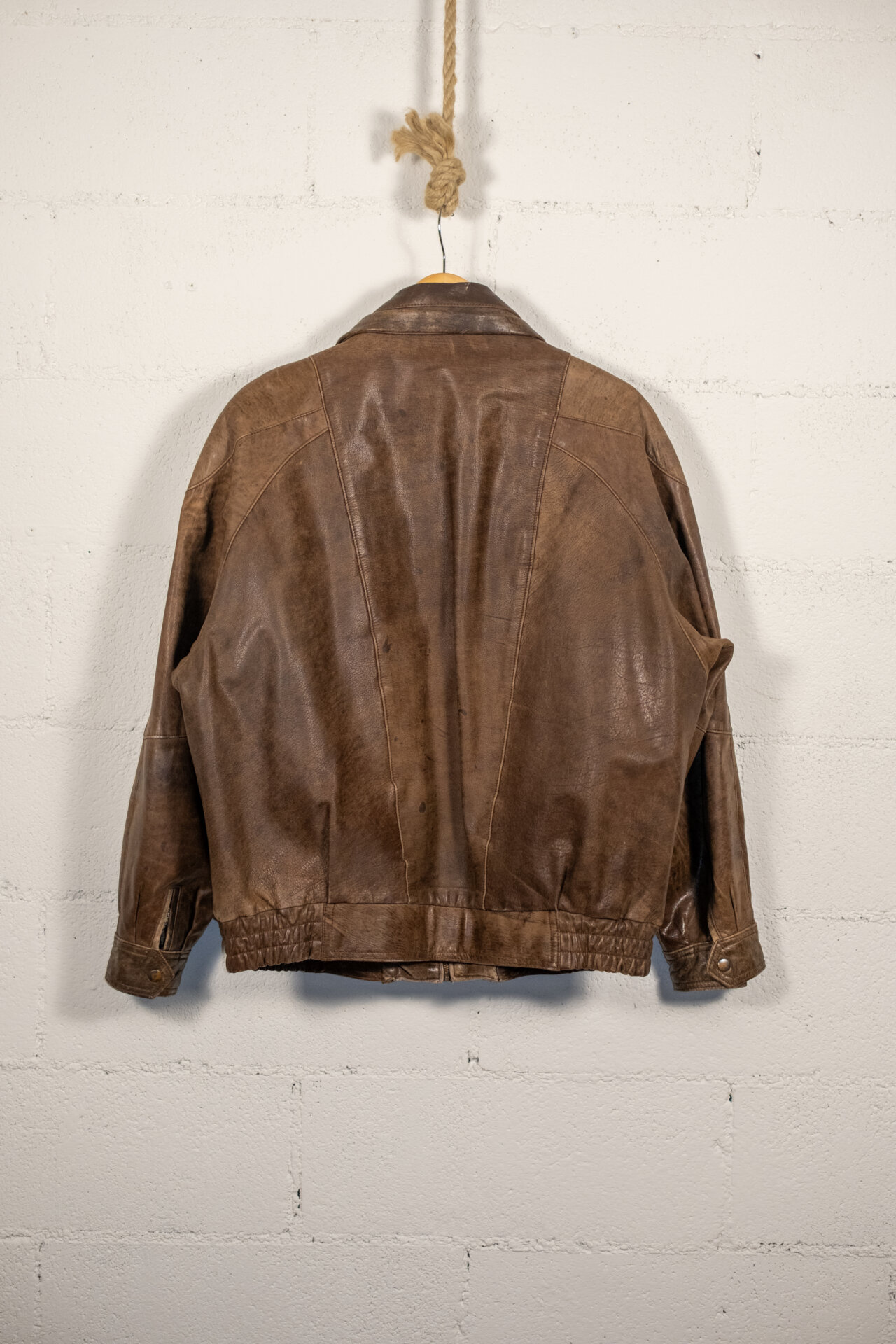 Giacca in pelle vintage anni ’90 dal design deciso e strutturato.
