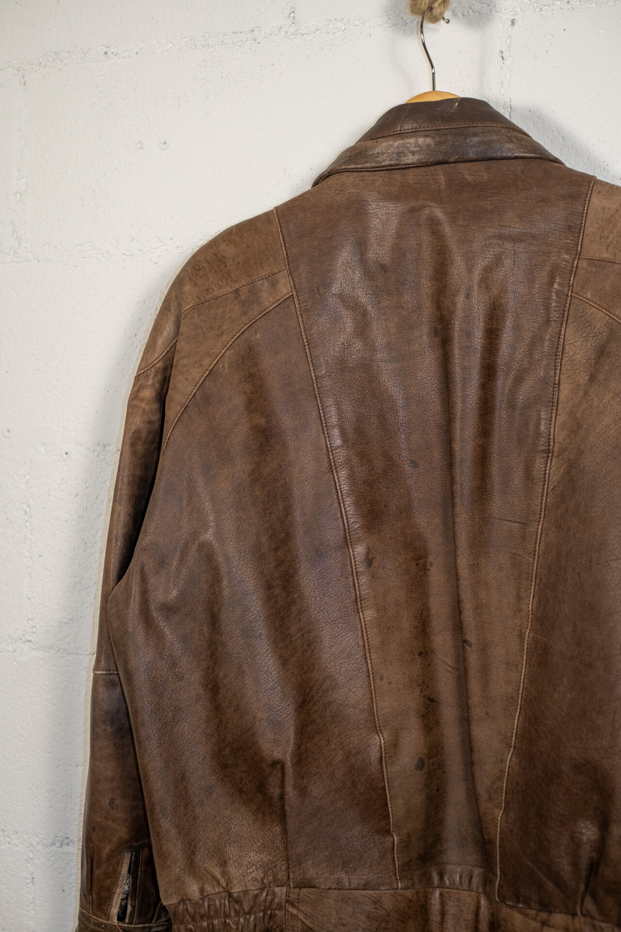 Giacca in Pelle Vintage Anni ’90 – Oversize Utility Biker / Taglia L