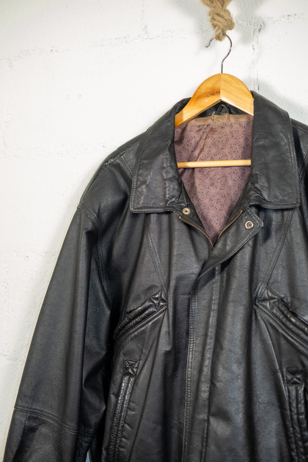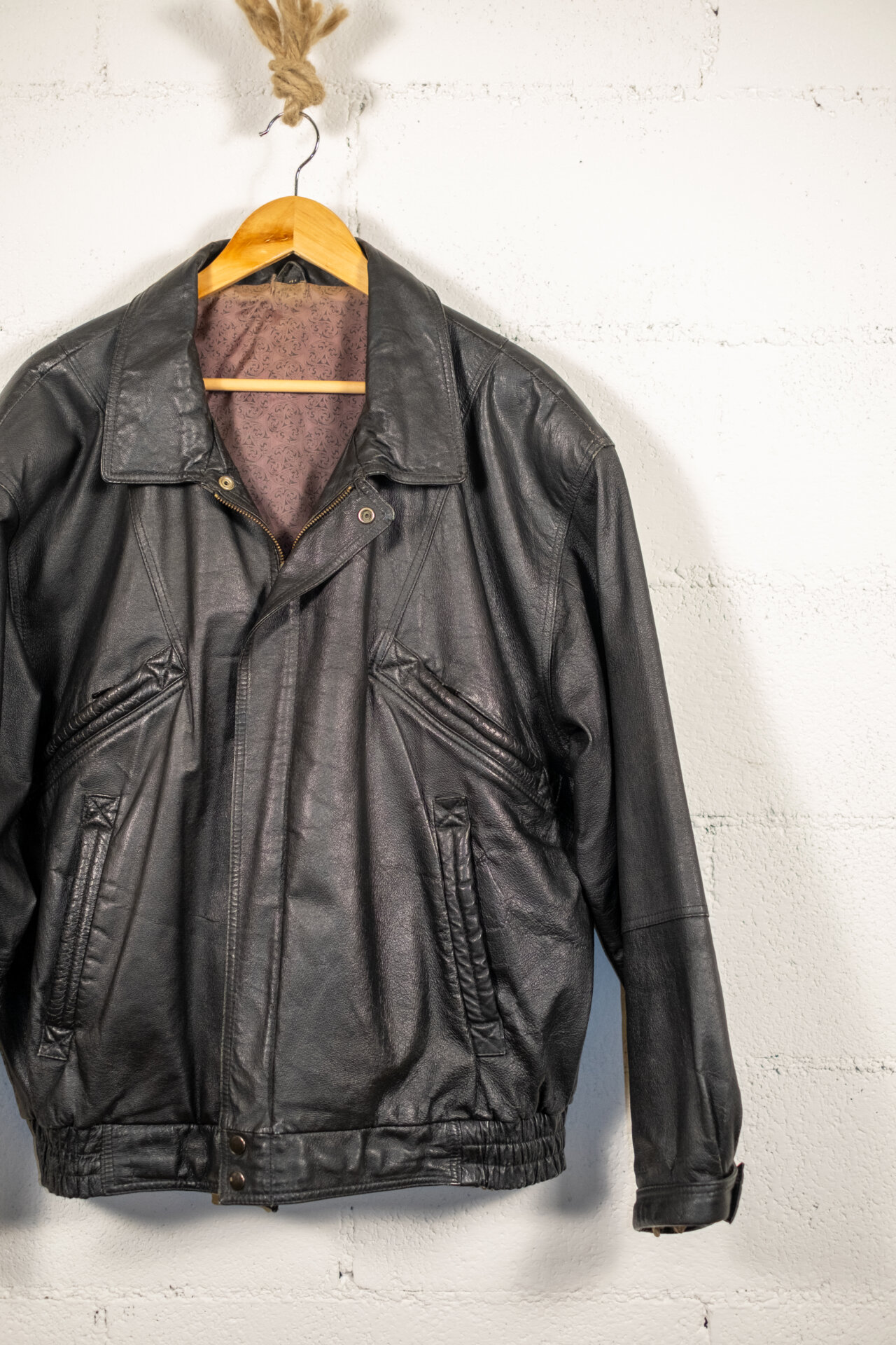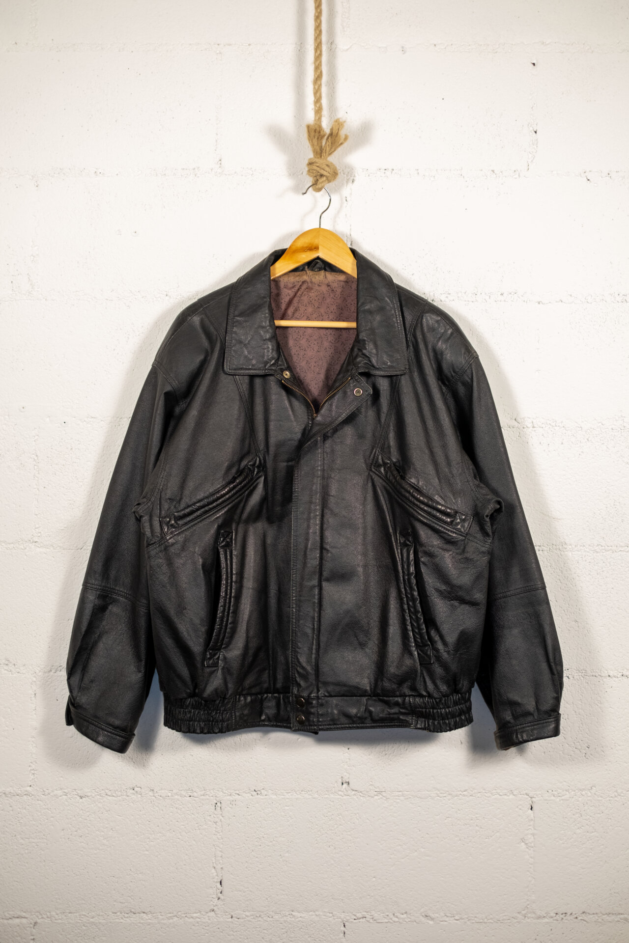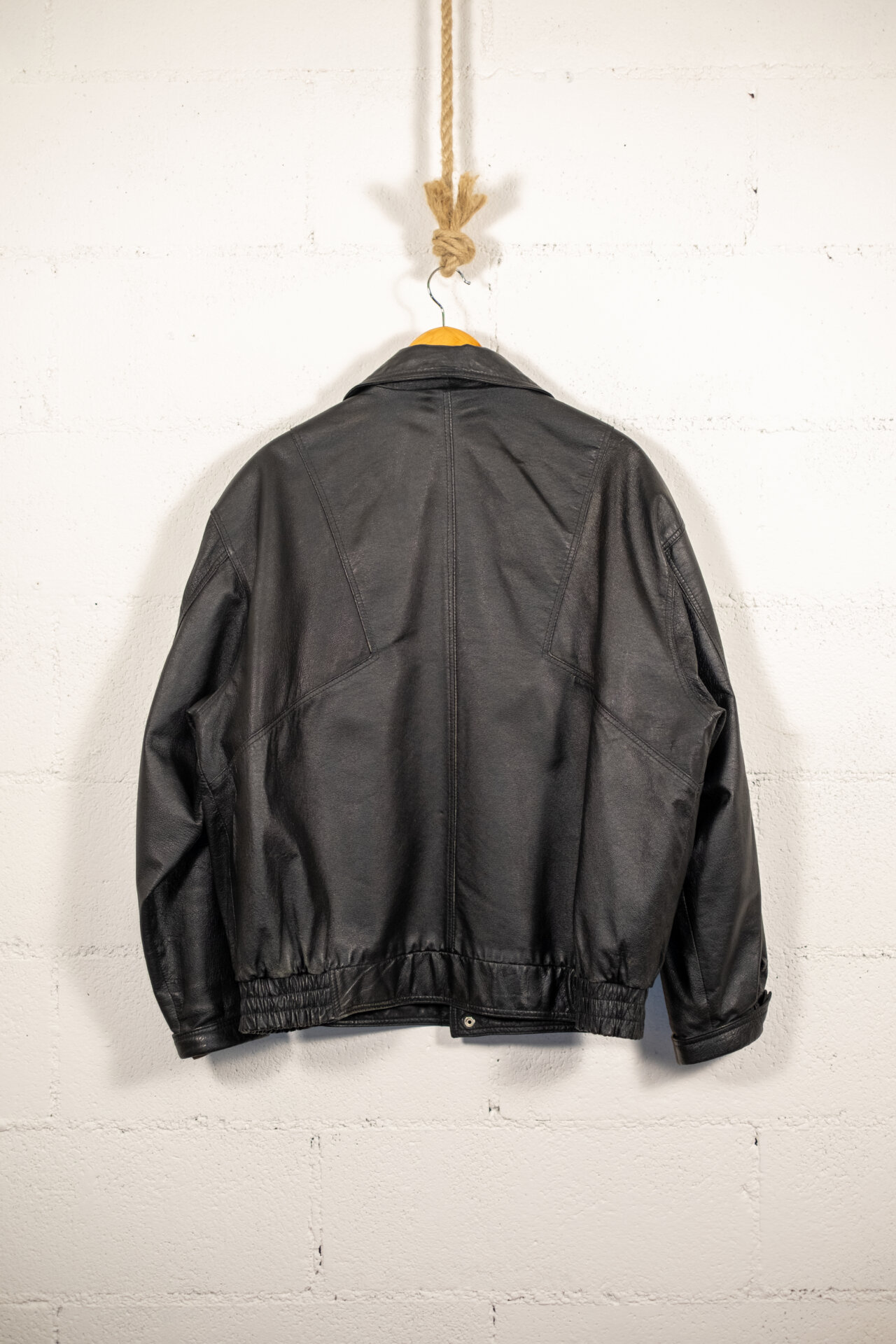 Giacca nera in Pelle Vintage Anni ’90 – Black Leather Jacket / Taglia L