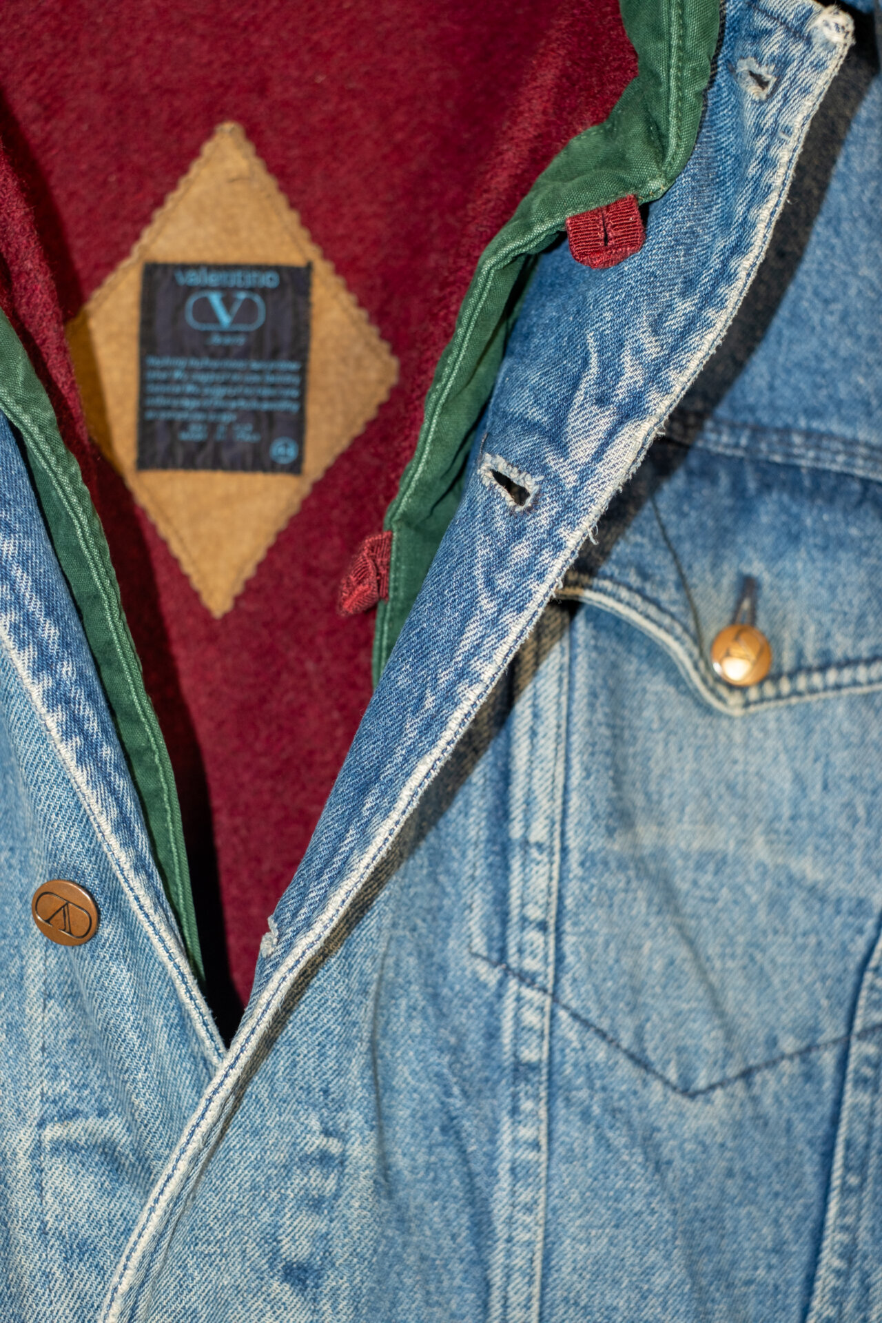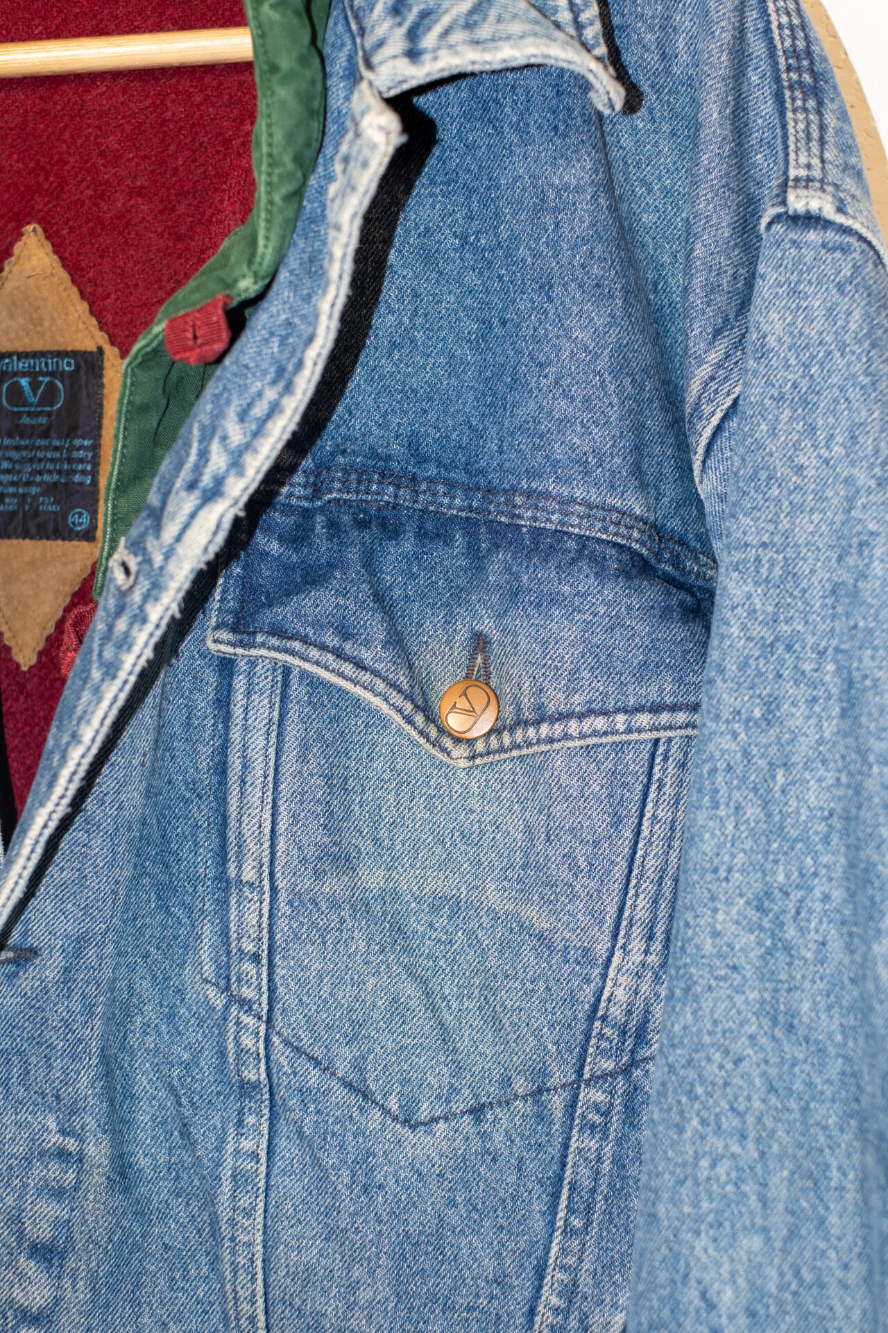 Giacca vintage Valentino in denim, raffinata reinterpretazione dello stile trucker anni ’90. Realizzata in denim strutturato con interno in lana per maggiore comfort e calore. Presenta chiusura frontale a bottoni, tasche sul petto con pattina e vestibilità regolare. Un capo solido ed elegante.