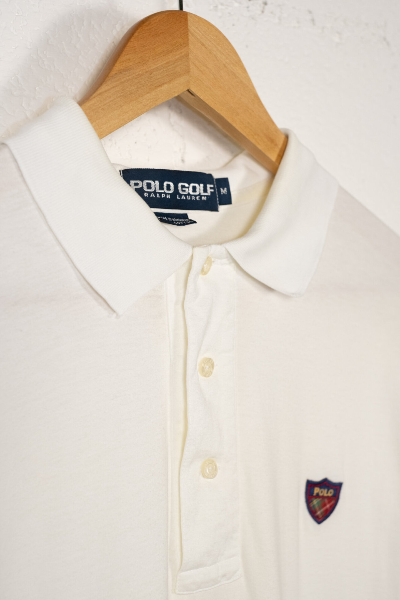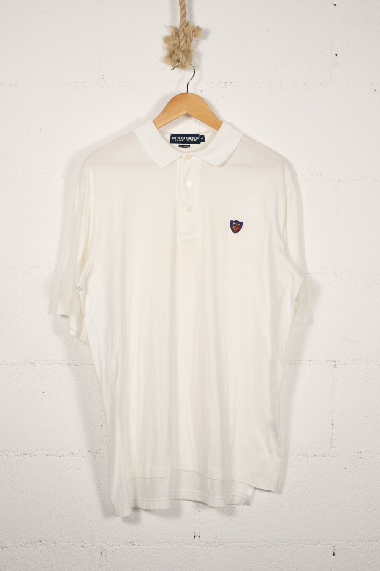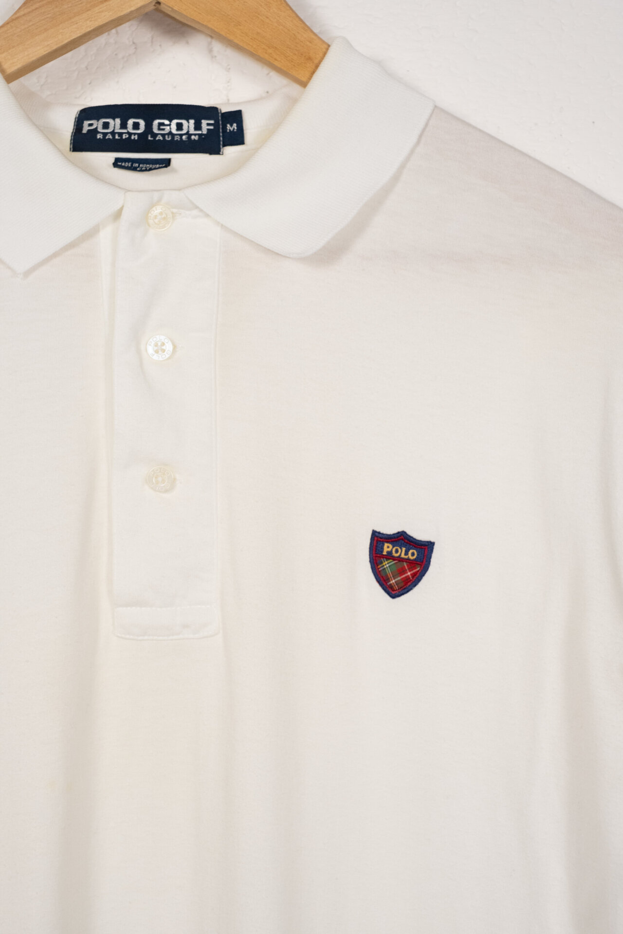 Polo vintage da uomo firmata Polo Golf Ralph Lauren. Realizzata in cotone leggero di alta qualità. Questa maglia a maniche corte è perfetta per un look casual ma raffinato. Il design minimal è arricchito dal logo ricamato a scudo con motivo tartan sul petto, simbolo dell’intramontabile stile preppy americano.